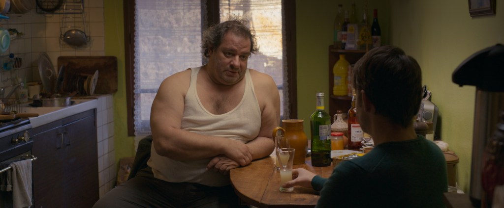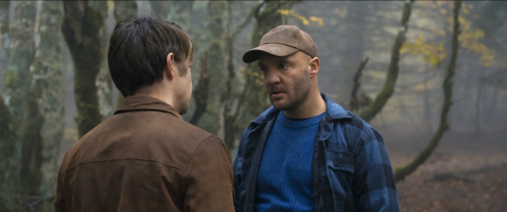Guiraudie’s naturalistic style also extends futher into the way the film is shot. His frequent collaborator Claire Methon returns to photograph the autunmal setting – not an unfamiliar territory given her work on Celine Sciamma’s Petite Maman – giving it a muted silence that calmly awaits the fictional power of Jérémie’s homecoming to take over. The film is very attuned to the natural setting. The misty and damp forest – while having great thematic purpose – never dominates the scenery as well as the numeorous night scenes that are given minimal exposures. It provides a sense that these places look just the way they are with or without the fiction intruding the samll town.