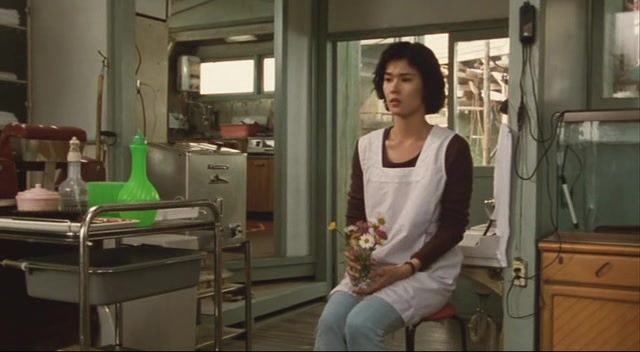 The Hitchcockian aspects of the film can also be attributed to the coincidental connection between the wife Takuro murders and Keiko. The film makes explicit that Keiko is the same age as Takuro’s wife when she died. The twofold interpretation is, first, this is an elusive offer for Takuro to continue on his domestic life with a fresh start and second, a commentary on how prison only manages to waste Takuro’s natural life and halt any spiritual developments or reconciliations he may have. This is shown by how Takuro’s lack of conversation skills and stringent, militaristic behaviour are when he is first released. Visually, mirroring the physical gestures of Keiko and Takuro’s wife is a test for Takuro to see them as separate individuals and accept reality as it is. The most evident is the lunchbox as a recurring, dramatized object that suggests a secure domestic order and whether Takuro chooses to partake in it once more. There is also a Peeping Tom sequence that visually echoes Takuro’s sexual insecurity; perhaps the best placed eel analogy.
