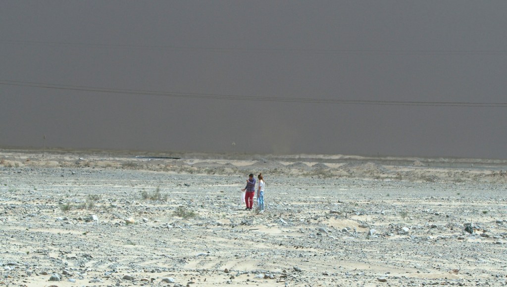 The foremost point of intrigue is the nebulous intentions of Zhou’s camera. Instead of tracking specific actions of people or dedicating his camera to the distinctive landscape of the Gobi desert, Zhou modulates between the two and gradually accomplishes an incredibly intoxicating obfuscation that deems the two inseparable from one another. For instance, a scene that begins with a wide shot of two women walking and collecting rocks in the middle of the desert, the formal expectation of this scene is that the camera will track the movements of the two women until it eventually cuts to the next shot. However, the camera subverts this expectation by remaining static while the two women move to the left of the frame, then gradually pans and zooms in the opposite direction of the women’s movements; an abrupt cut transitions this shot to a complete different landscape while the camera continues to pan and zoom in the same direction before the last shot concludes. Through this scene, Zhou’s cinematic language appears to jettison spatial continuity for a congruous mode of camera movement, cementing the participation of the observer while eschewing and mystifying what is being observed, merging the land and its people.